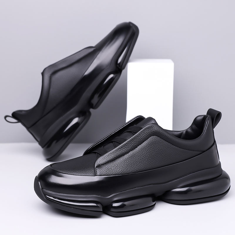 รองเท้าผ้าใบหนังแท้พรีเมียมปี 2026 สำหรับผู้ชาย ดีไซน์ทันสมัย พื้นรองเท้าแบบหนา นุ่มสบาย เหมาะสำหรับเดินตลอดวัน