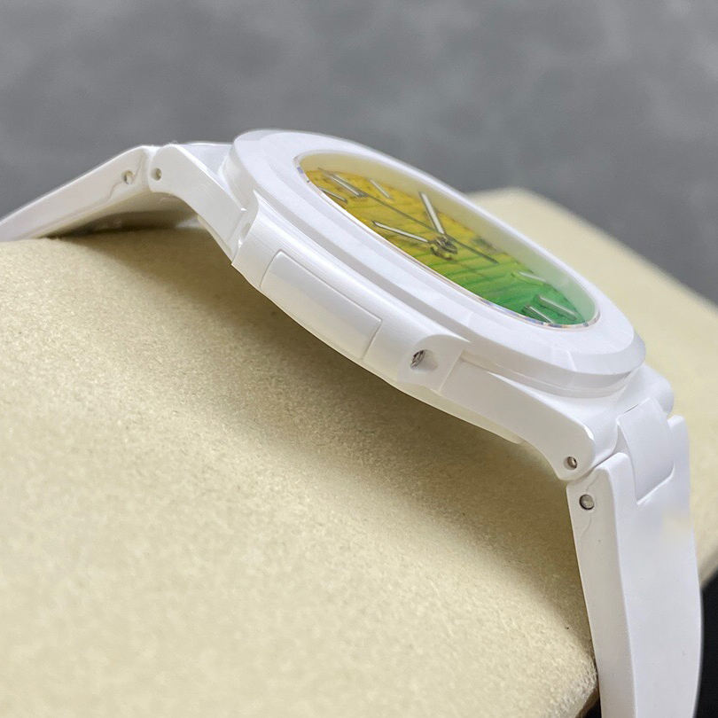 นาฬิกาข้อมือเซรามิกพรีเมียมสำหรับผู้ชาย ปี 2026 ขนาด 40 มม. ตัวเรือนทรงแปดเหลี่ยม หน้าปัดลายเส้นไล่เฉดสีเหลืองเขียว แสดงวันที่ กันน้ำ นาฬิกาหรู