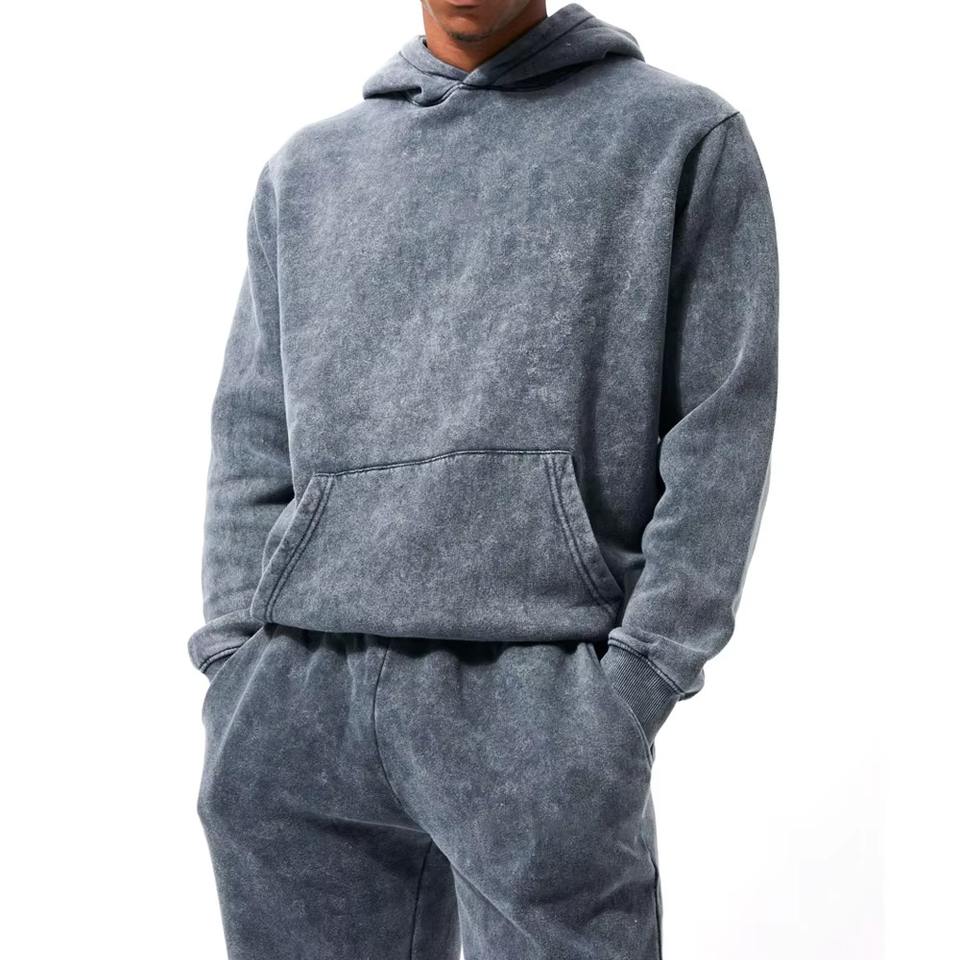 ชุดเซ็ตเสื้อฮู้ดดี้และกางเกงวอร์มทรงวินเทจแบบซันแอซิดวอช คุณภาพพรีเมียม ปี 2026 แบบสั่งทำพิเศษ พิมพ์ลาย DTG 2 ชิ้น สำหรับผู้ชาย ใส่ในฤดูหนาว