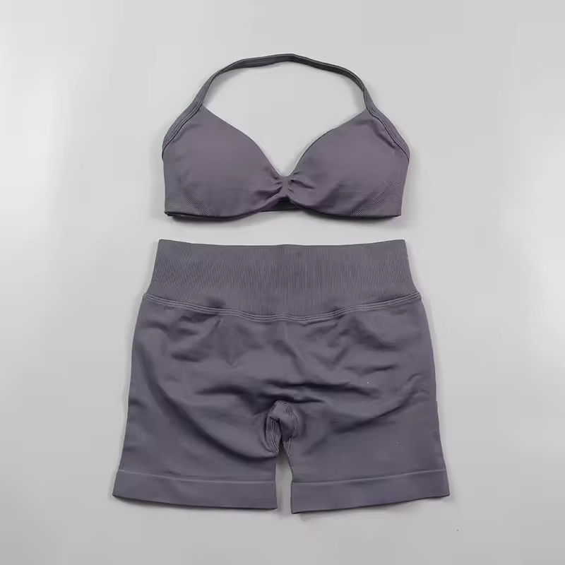 ชุดโยคะผู้หญิงคุณภาพพรีเมียมปี 2026 ดีไซน์ล่าสุด ผ้าแคนวาสสีพื้น สไตล์ลำลอง ชุดกีฬา 2 ชิ้น กางเกงขาสั้น ผลิตตามสั่ง ระบายอากาศได้ดี