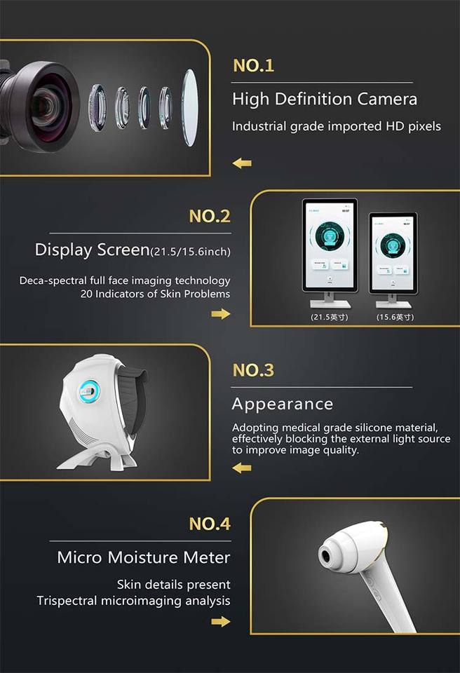 เครื่องวิเคราะห์ผิวหน้า 3 มิติ ด้วย AI ระดับมืออาชีพ พร้อมกระจกวิเศษ และปลั๊กแบบ EU - ระบบวินิจฉัยระดับสปา