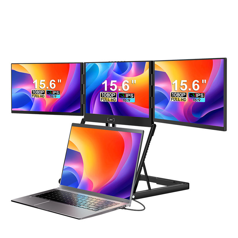 จอภาพ IPS LCD แบบสามจอขนาด 15.6 นิ้ว ความละเอียด 1080P ปี 2026 สำหรับแล็ปท็อป วัสดุอะลูมิเนียม พกพาสะดวก พร้อมพอร์ตเชื่อมต่อ USB รุ่นใหม่