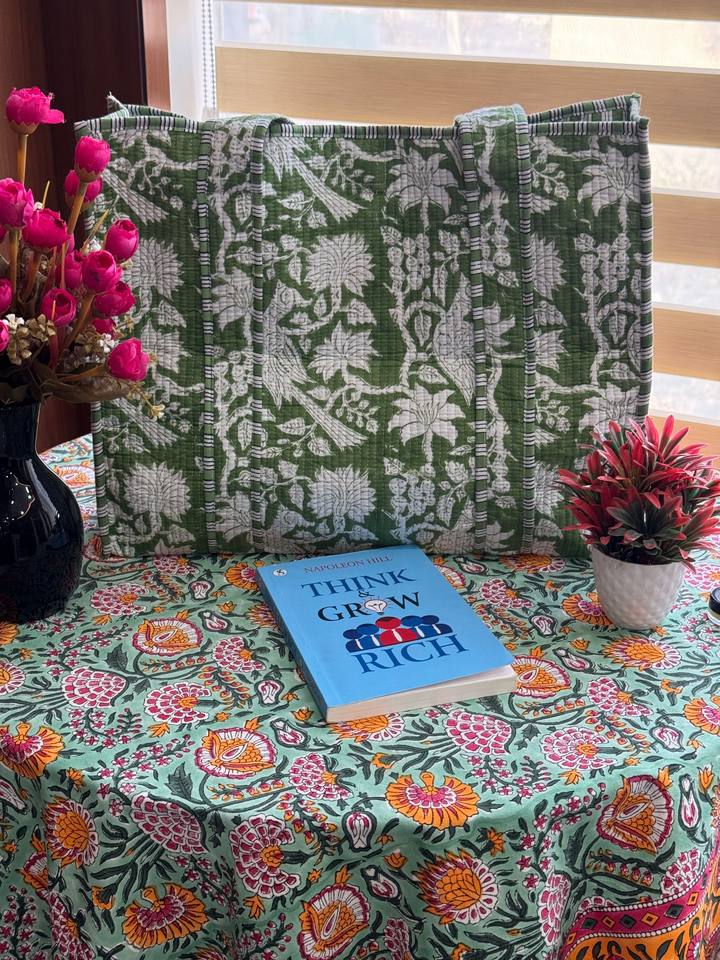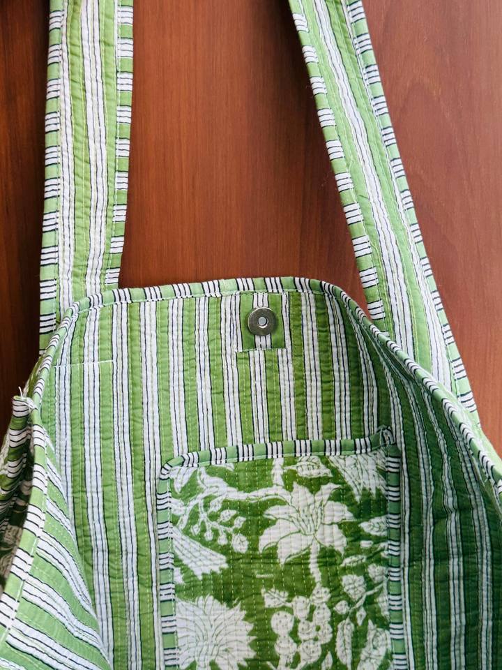 2026 Quilted Cotton Fabric Travel Shoulder Tote Bag for Women Summer Shopping Bag