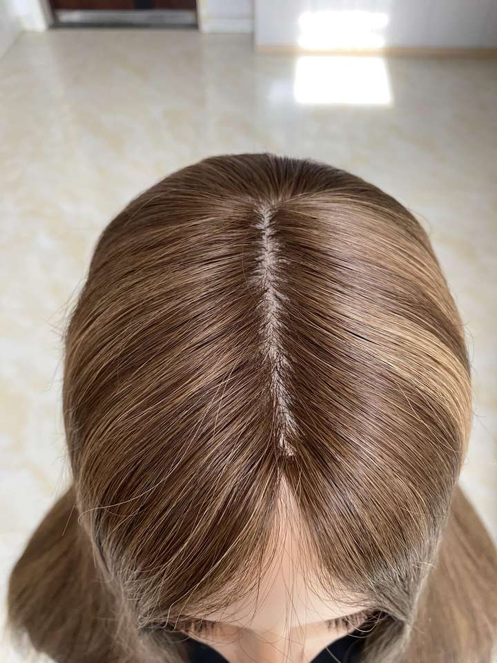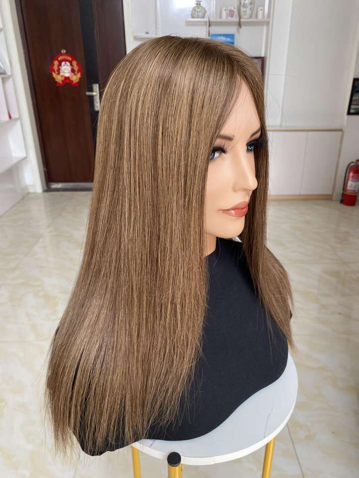 2026 Ready to Ship Invisible Knots European Virgin Human Hair 9x9 Silk Base Human Hair Topper Brown Balayage Color Wholesale