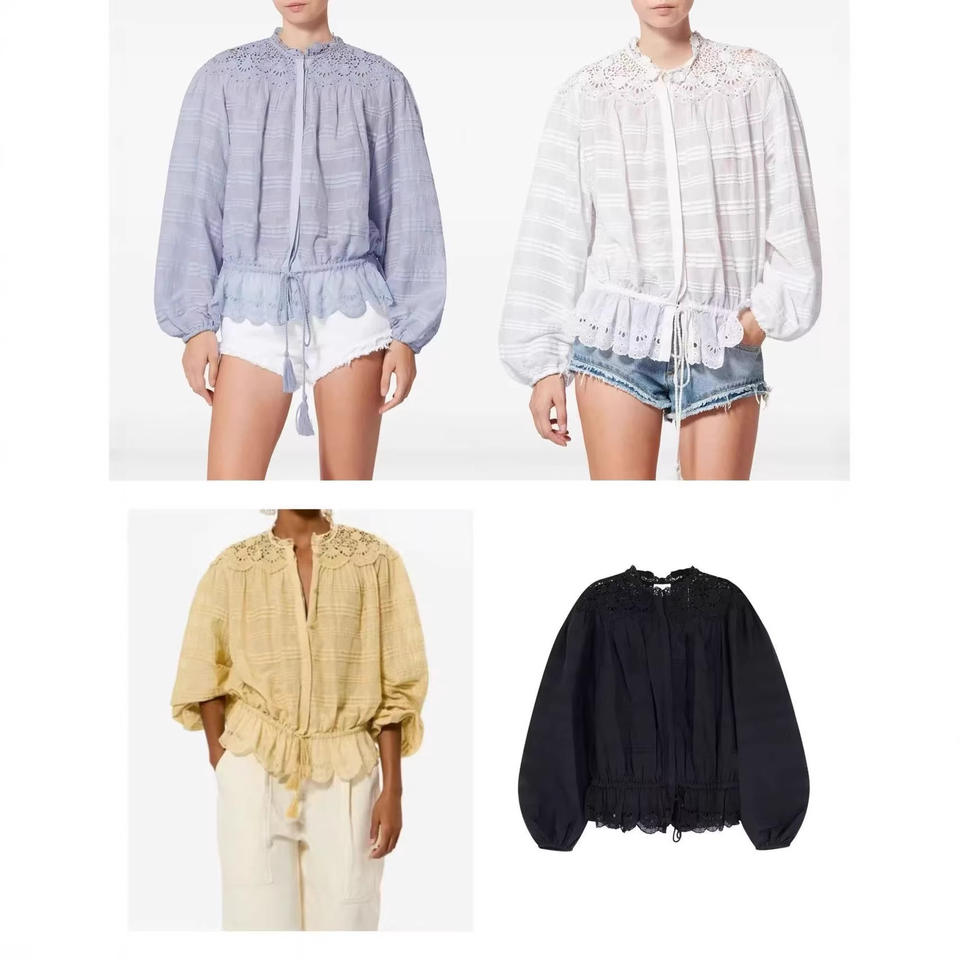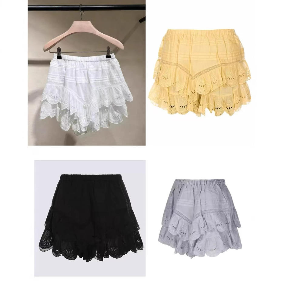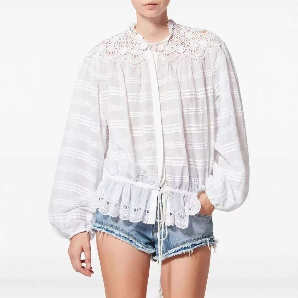 ชุดเซ็ตสองชิ้นสไตล์ฝรั่งเศสแบบใหม่ ปี 2026 ทรงหลวม เซ็กซี่ | เสื้อแขนลูกไม้ทรงฮับเบิล-บับเบิ้ล คอโอ + กางเกงคูลอตต์ระบาย (โพลีเอสเตอร์ 100%)
