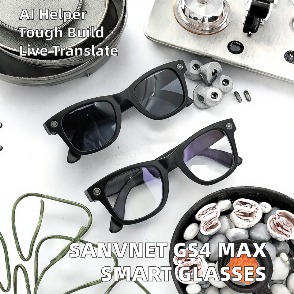 2026 sanvnet ชุดหูฟังกล้อง Ai กลางแจ้ง GS4สูงสุด, แว่นตาอัจฉริยะพร้อมเลนส์คู่8MP การถ่ายโอน Wi-Fi 4K