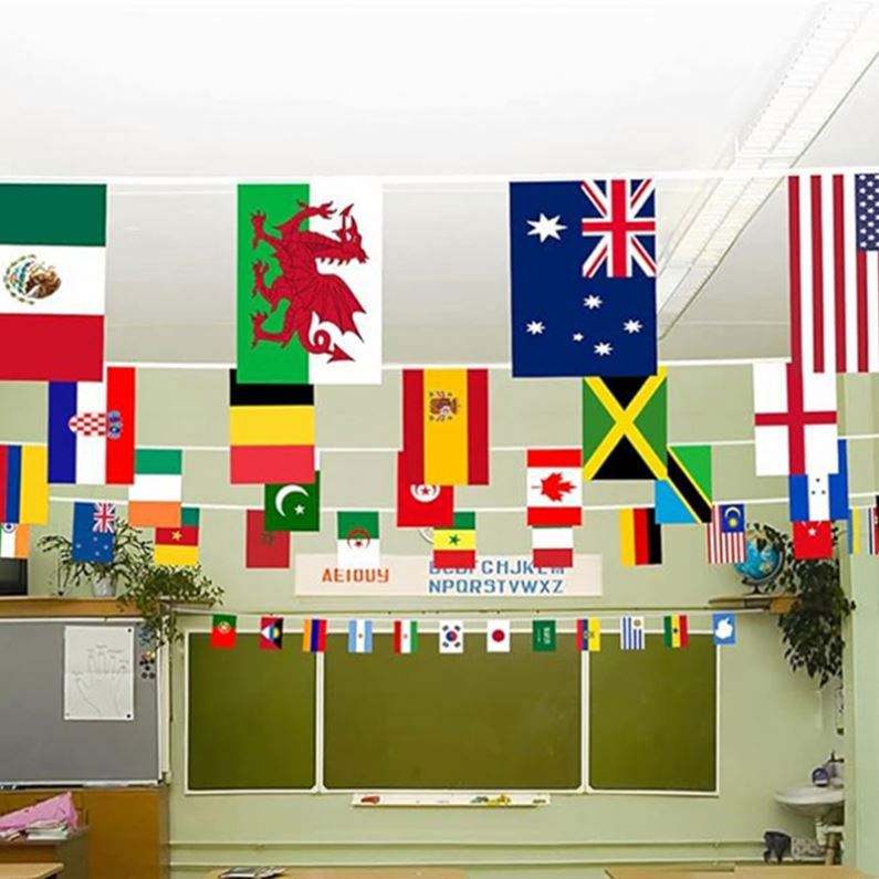 ธงแขวนประดับตกแต่งงานกีฬาปี 2026 พิมพ์ลายดิจิทัลบนผ้าโพลีเอสเตอร์ พร้อมโลโก้สั่งทำพิเศษ ธงชาติทั่วโลก