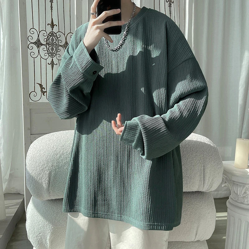 เสื้อยืดแขนยาวลำลองสไตล์เกาหลีสำหรับผู้ชาย คอลเลคชั่นฤดูใบไม้ผลิ/ฤดูใบไม้ร่วง ปี 2026 ทรงหลวม คอกลม แฟชั่นสตรีทแวร์