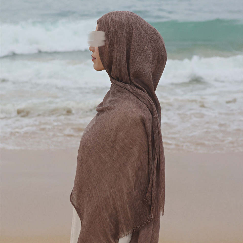 ฮิญาบผ้าเรยอนย่นมีพื้นผิวแบบบางตามสั่งสำหรับฤดูใบไม้ผลิฤดูใบไม้ร่วง2026สำหรับใช้ในชีวิตประจำวัน