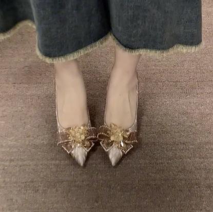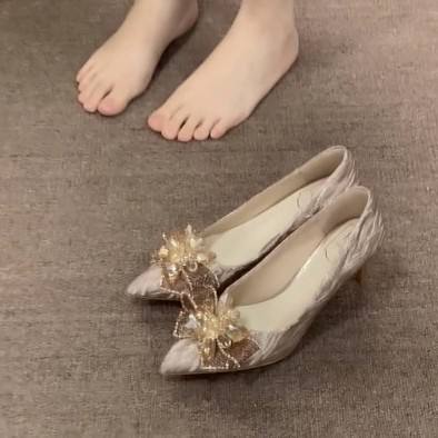 รองเท้าส้นสูงสีแชมเปญสุดหรูสำหรับฤดูใบไม้ผลิและฤดูใบไม้ร่วงปี 2026 ป้องกันการลื่น ใส่ได้สองแบบ รองเท้าเจ้าสาว รองเท้าลำลองสำหรับผู้หญิง