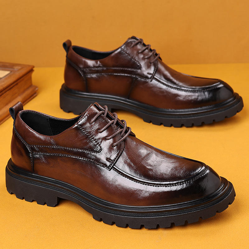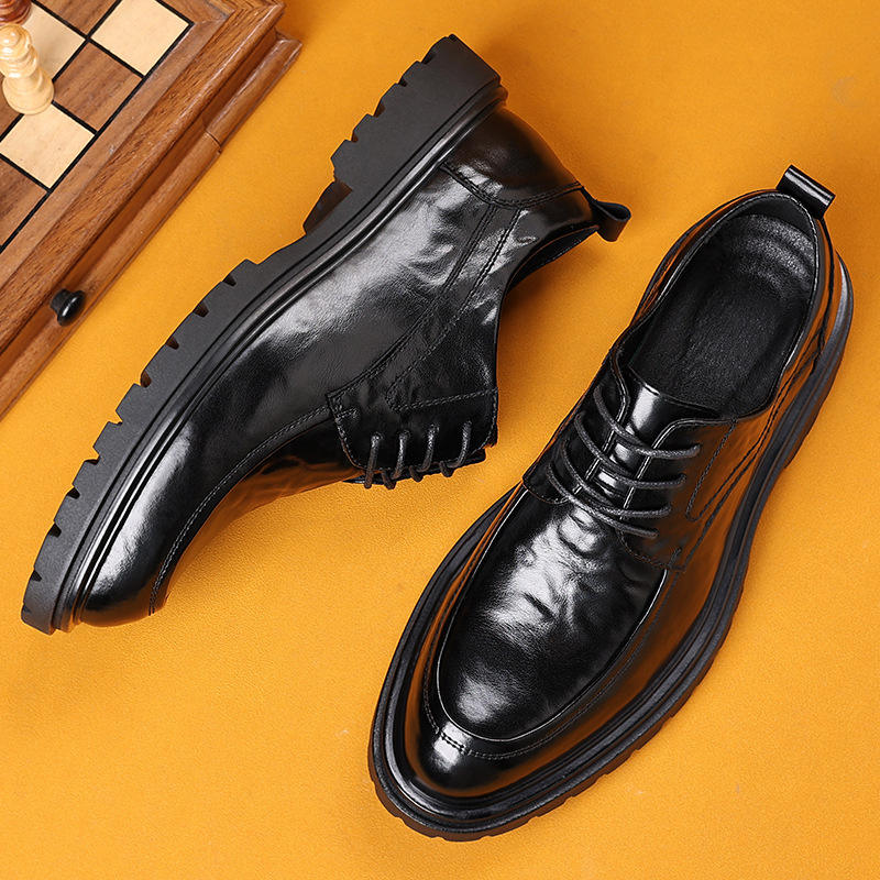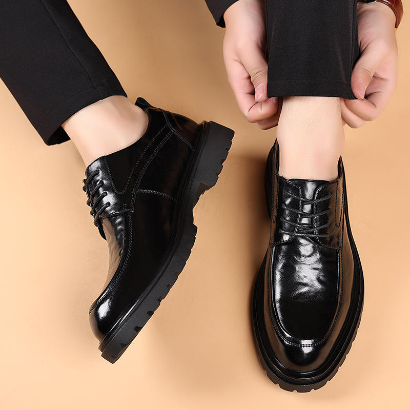 รองเท้าหนังผู้ชายสีดำ หนังวัวแท้ สำหรับฤดูใบไม้ผลิปี 2026 เหมาะสำหรับธุรกิจ งานทางการ งานแต่งงาน รองเท้าออกซ์ฟอร์ดลำลอง สำหรับหนุ่มๆ