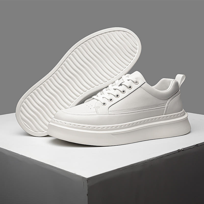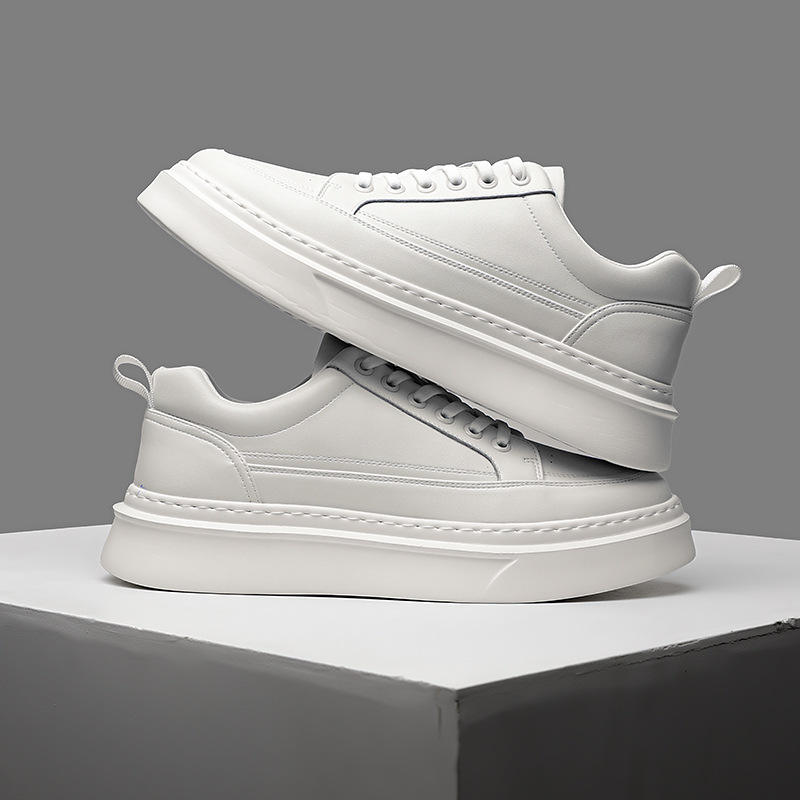 รองเท้าผ้าใบสีขาวสำหรับผู้ชายรุ่นใหม่ ฤดูใบไม้ผลิ ปี 2026 แบบสวมสบาย มีเชือกผูก ระบายอากาศได้ดี ซับในตาข่าย ทนทาน รองรับแรงกระแทก พื้นหนา
