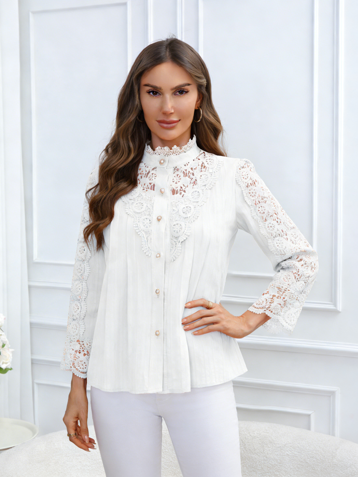 2026 Spring/Summer Casual Cotton Knitted Long Sleeve O-Neck Lace Decoration Shirt for Women Simple Design Regular Fit Georgia