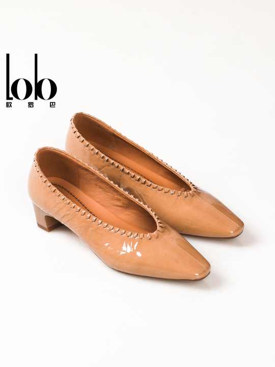 รองเท้าส้นสูงสไตล์เรโทรอังกฤษสำหรับผู้หญิง ฤดูใบไม้ผลิ 2026 หัวเหลี่ยม หนังเคลือบเงา สายรัดข้อเท้าแบบหัวเข็มขัดเดี่ยว สีพื้น แฟชั่น