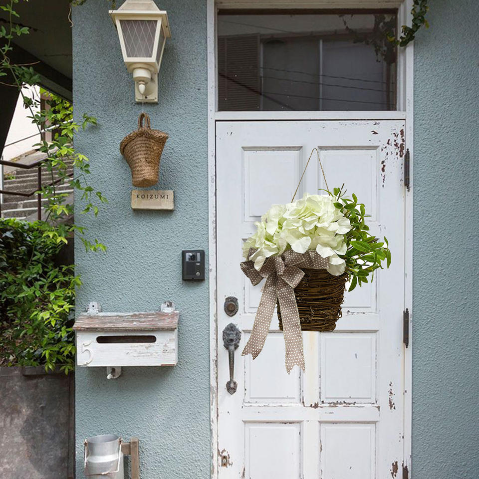 พวงหรีดดอกไม้ป่าฤดูใบไม้ผลิ 2026 ตะกร้าแขวนประตู พวงหรีดไฮเดรนเยียสีครีม ป้ายต้อนรับ ตกแต่งประตูหน้าบ้าน เครื่องประดับแขวนฤดูใบไม้ผลิ