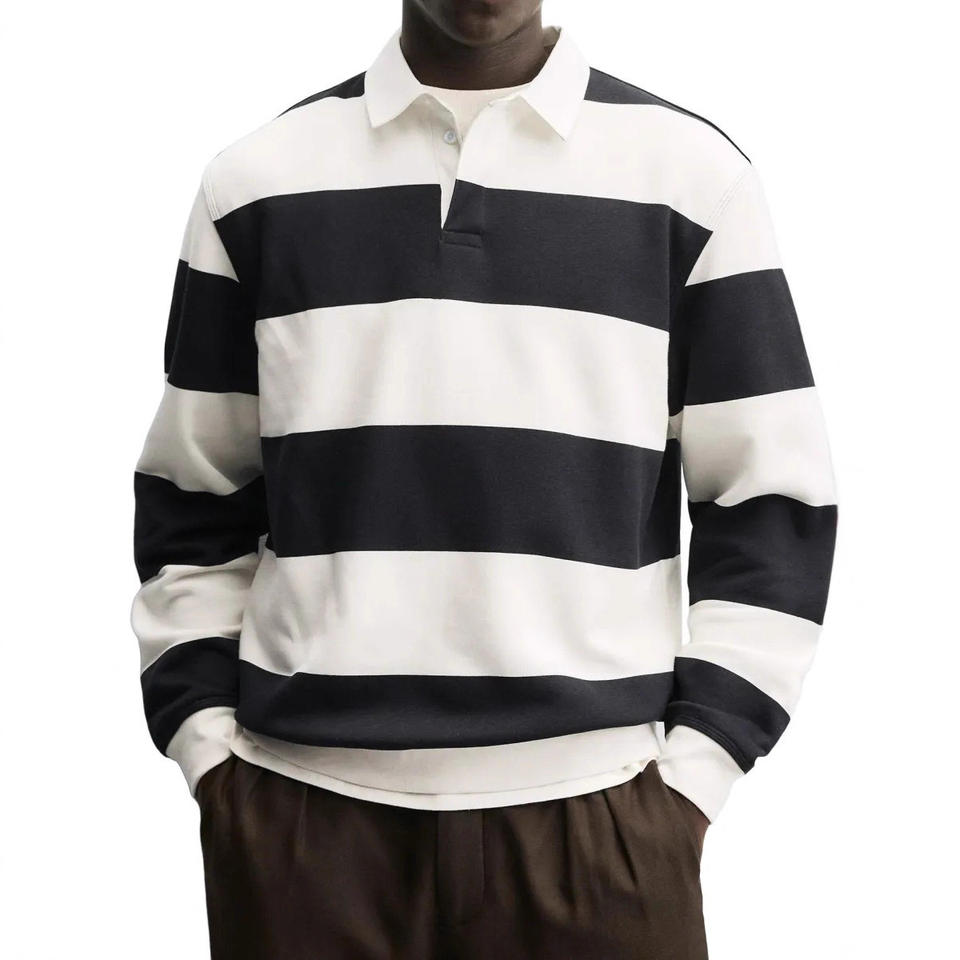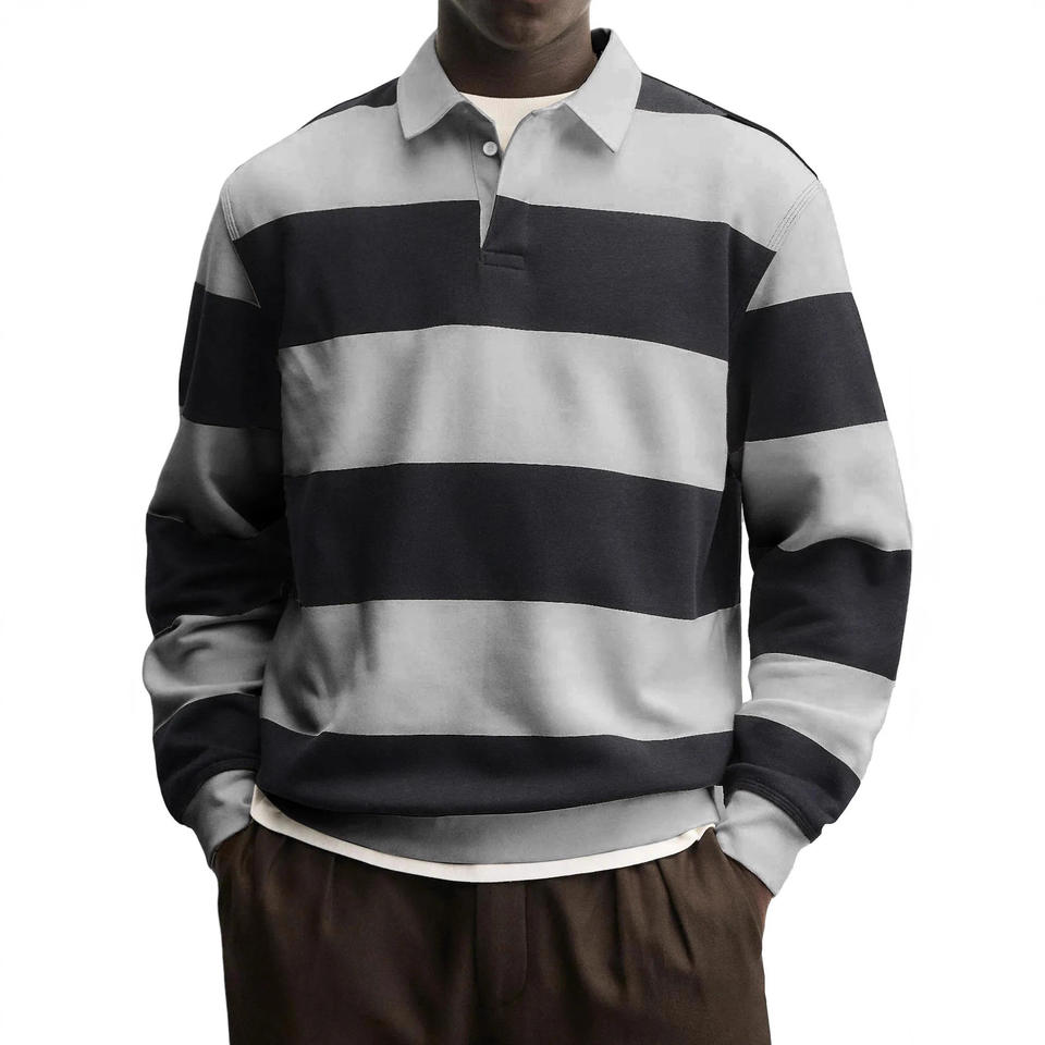 เสื้อโปโลแขนยาวลายทางคุณภาพสูงสำหรับผู้ชาย รุ่นใหม่ประจำฤดูใบไม้ผลิและฤดูใบไม้ร่วงปี 2026 ทรงหลวม สวมใส่สบาย