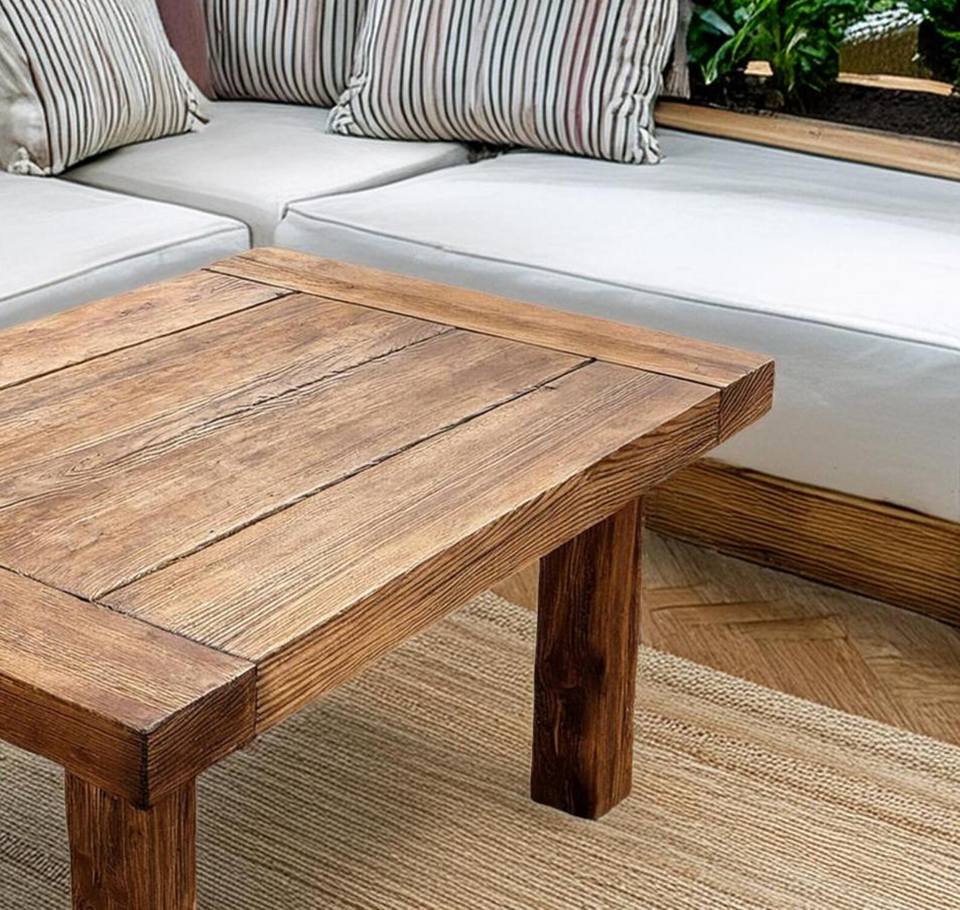 โต๊ะกาแฟไม้เนื้อแข็งทรงสี่เหลี่ยมปี 2026 พร้อมท็อปไม้หนา โครงสร้างแข็งแรง ขาไม้ทรงบล็อก และพื้นผิวแบบธรรมชาติสำหรับห้องนั่งเล่น