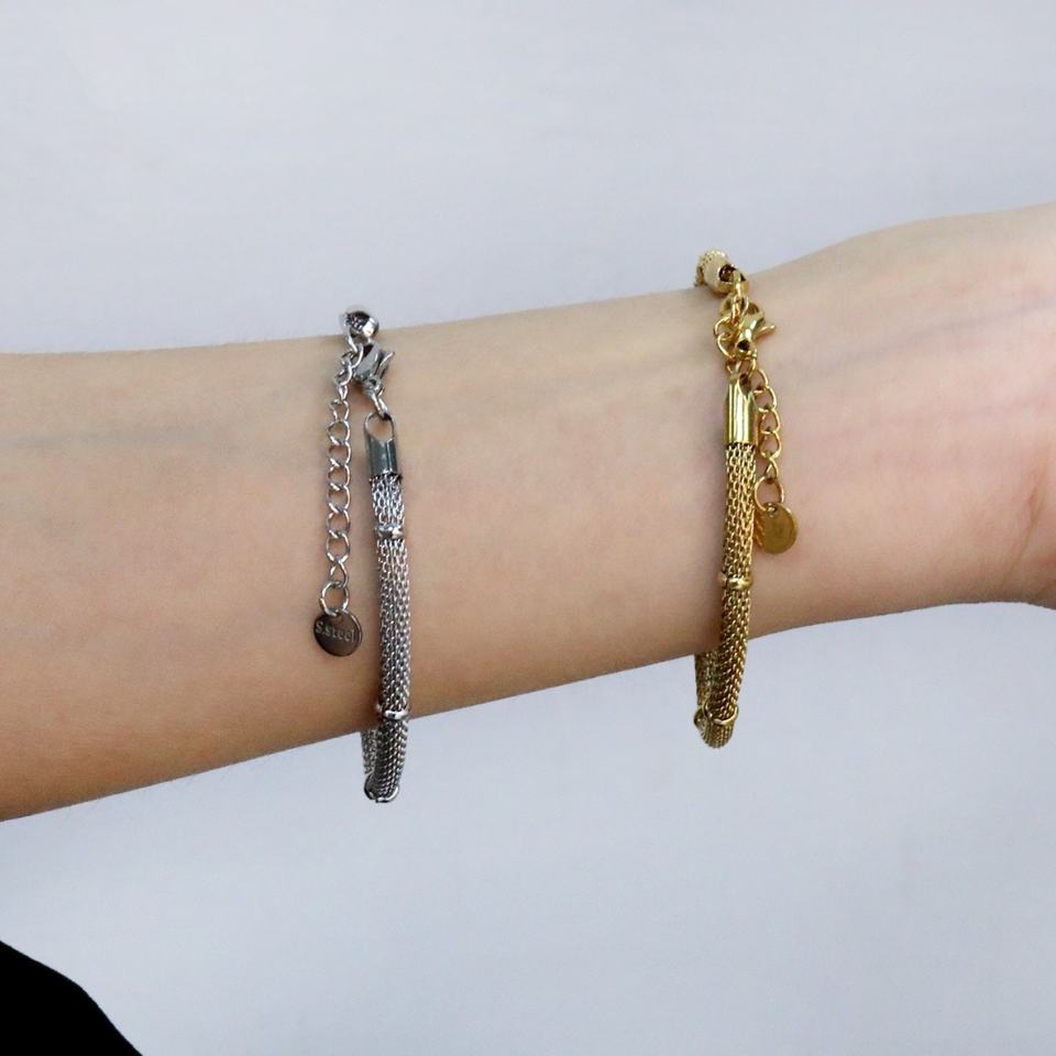 สร้อยข้อมือสแตนเลสสตีล 2026 ชุบทอง 18K ลายตาข่ายถักแบบมีเท็กซ์เจอร์ สไตล์มินิมอล ดีไซน์หนา สำหรับผู้หญิง