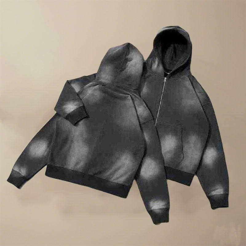 ชุดวอร์มสตรีทแวร์สไตล์วินเทจแบบย้อมสีเอซิดปี 2026 สำหรับผู้ชาย ชุดฮู้ดดี้และกางเกงขายาวแบบปะติดปะต่อสไตล์ดิสเทรส