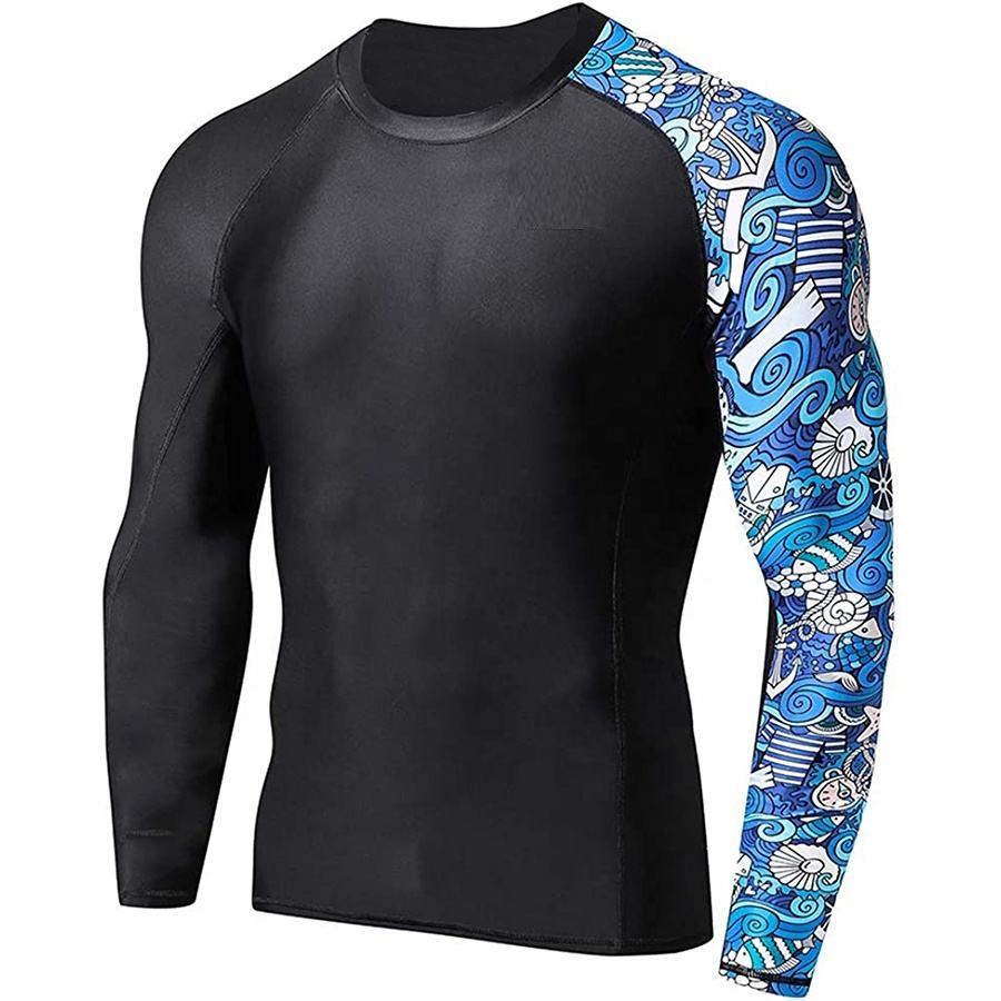 เสื้อรัดกล้ามแขนยาวพิมพ์ลายแบบซับลิเมชั่น ปี 2026 สำหรับ MMA BJJ และเซิร์ฟ ปรับแต่งโลโก้ได้ ผลิตจากผ้าสแปนเด็กซ์/ไนลอน ระบายอากาศได้ดี แห้งเร็ว
