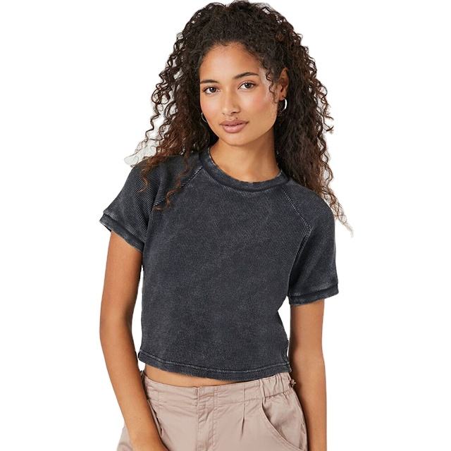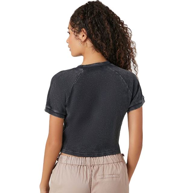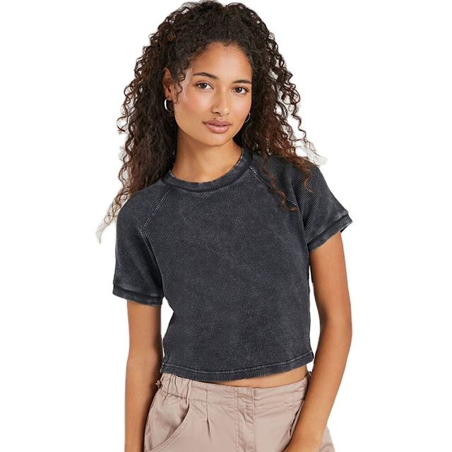 เสื้อครอปท็อปผู้หญิงทรงปกติ คอโอ แบบยืดหยุ่น ซัมเมอร์ 2026 แฟชั่นสไตล์วินเทจ ล้างสีแบบแอซิดวอช ความยาวสั้น ผลิตตามสั่ง ราคาโรงงาน ขายส่ง