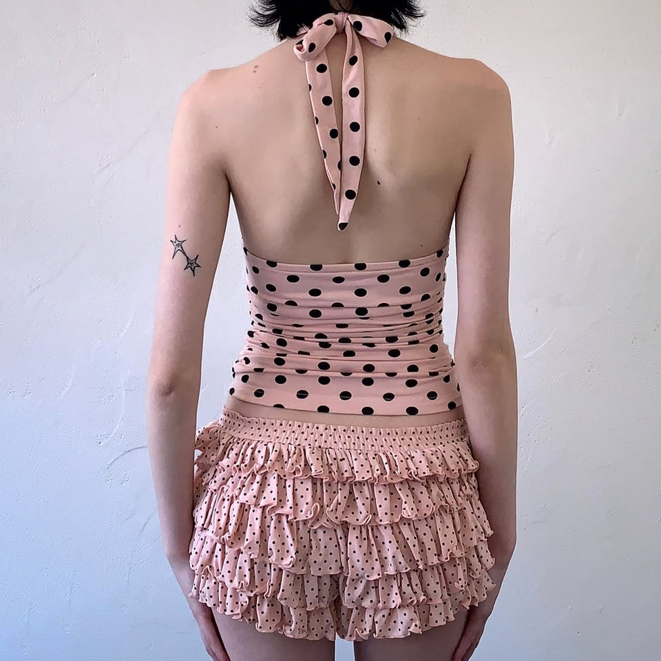 2026 ซัมเมอร์ ฮอตเซลล์เสื้อสายเดี่ยวผู้หญิงเซ็กซี่ลายจุดพิมพ์ลายสลิมฟิตผูกเชือกเสื้อสายเดี่ยวสไตล์ Y2K