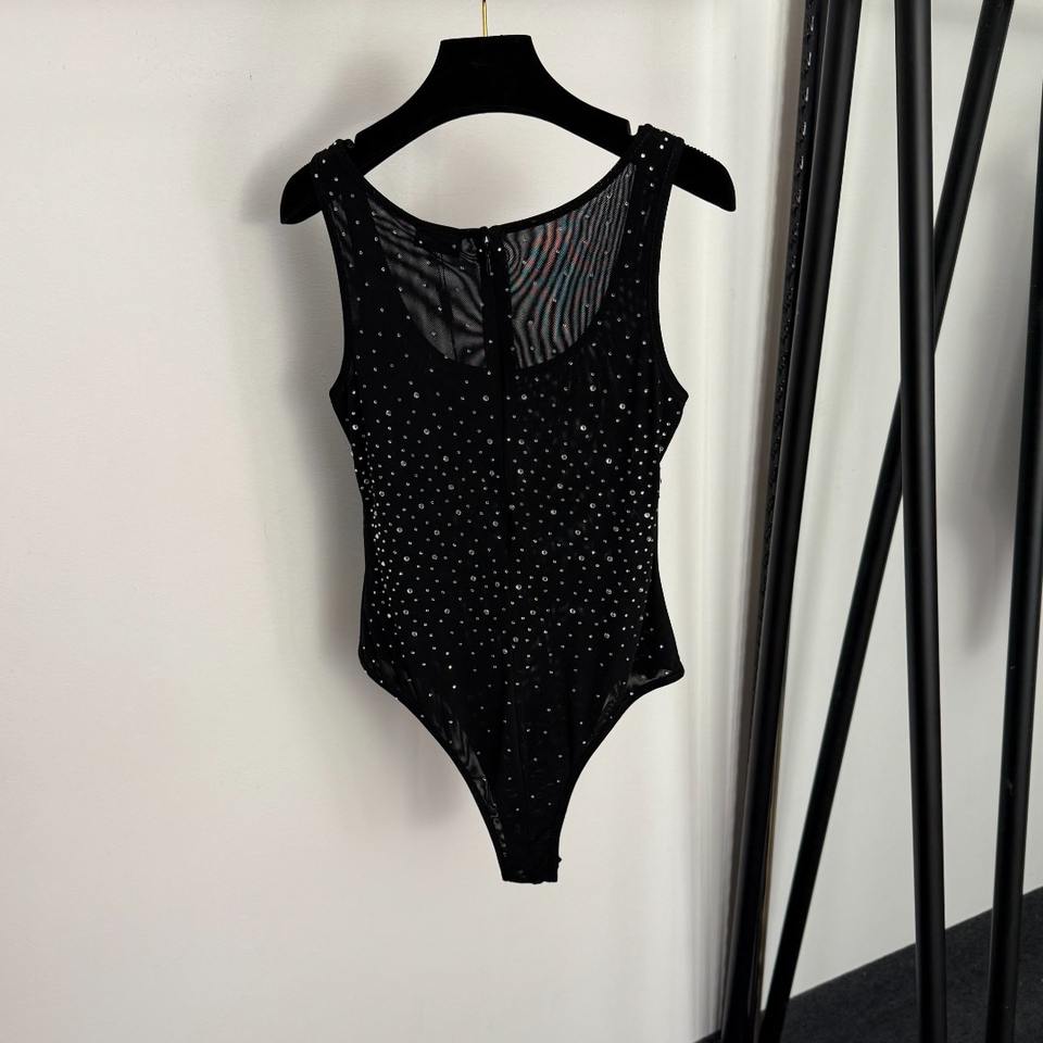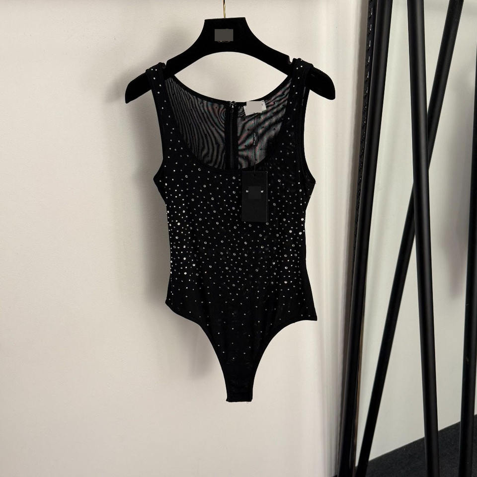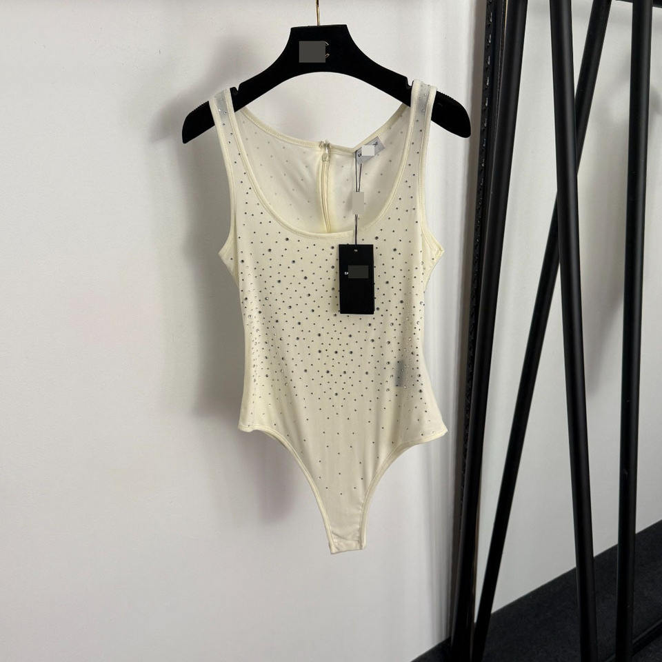 ชุดบอดี้สูทแบบสายเดี่ยวรัดรูป ประดับคริสตัล โชว์หลัง สไตล์ INS รุ่นใหม่ประจำฤดูร้อน 2026 ผ้าแห้งเร็ว สำหรับผู้หญิง