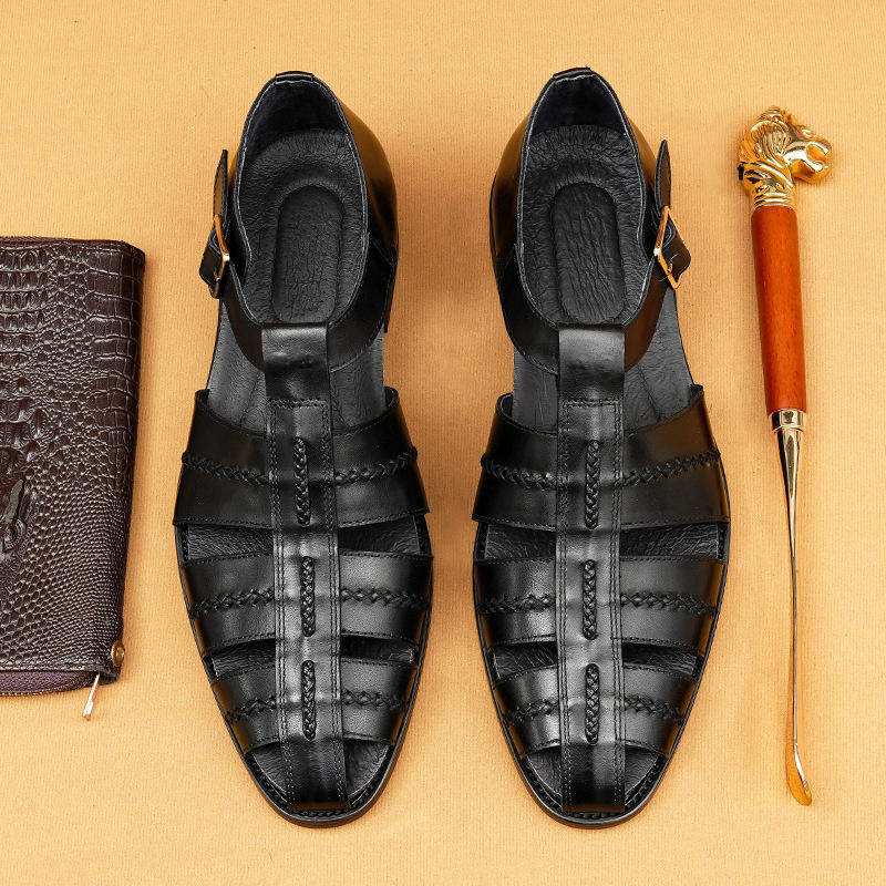 รองเท้าแตะโรมันแบบสานมือสไตล์เรโทรหนังแท้สำหรับผู้ชาย คอลเลคชั่นฤดูร้อน 2026 - รองเท้าลำลองระบายอากาศดี ดีไซน์ถัก