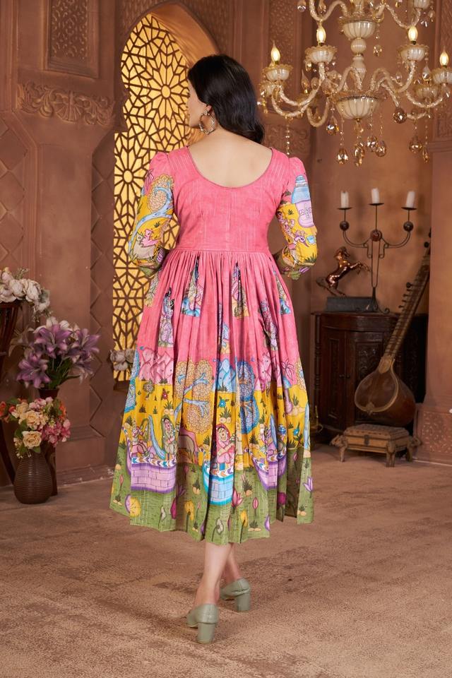 เดรสลำลองแฟชั่นใหม่ลายดอกไม้พิมพ์ลายดิจิทัลสไตล์ตะวันตกสำหรับฤดูร้อนปี 2026 ผู้หญิงไซส์พลัส คอทรงโอ ผ้ามัสลินพิมพ์ลาย แขนสามส่วน