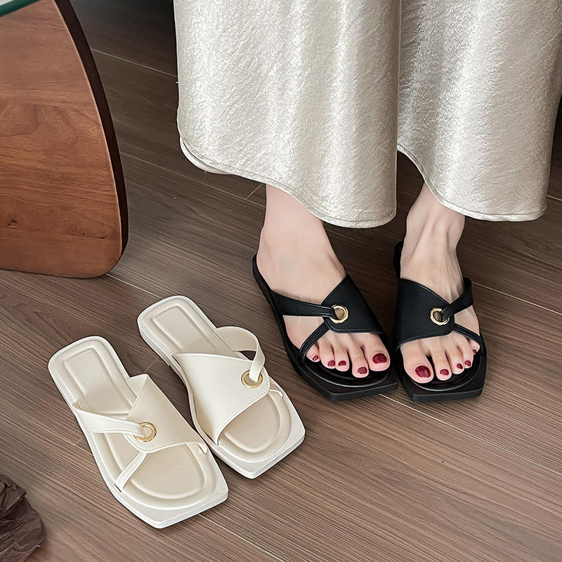 รองเท้าแตะสไลด์สไตล์ฝรั่งเศสแบบโปร่ง รุ่นใหม่ประจำฤดูร้อนปี 2026 หัวเหลี่ยมแบบโรมัน แฟชั่นสำหรับผู้หญิง ใช้งานได้หลากหลาย เหมาะสำหรับใส่กลางแจ้ง