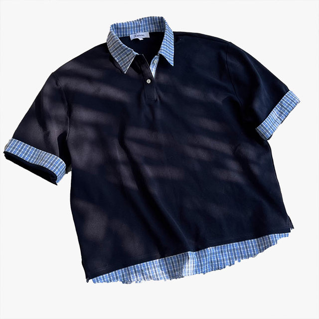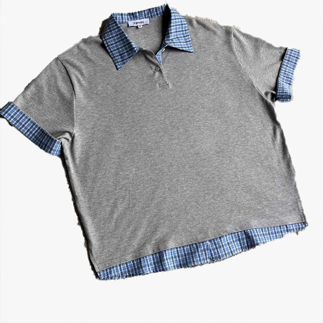 เสื้อโปโลแขนสั้นลายสก็อตสไตล์ทูพีซสำหรับผู้ชาย รุ่นปี 2026 ตัดต่อผ้า แบรนด์ทันสมัย สไตล์พรีปปี้