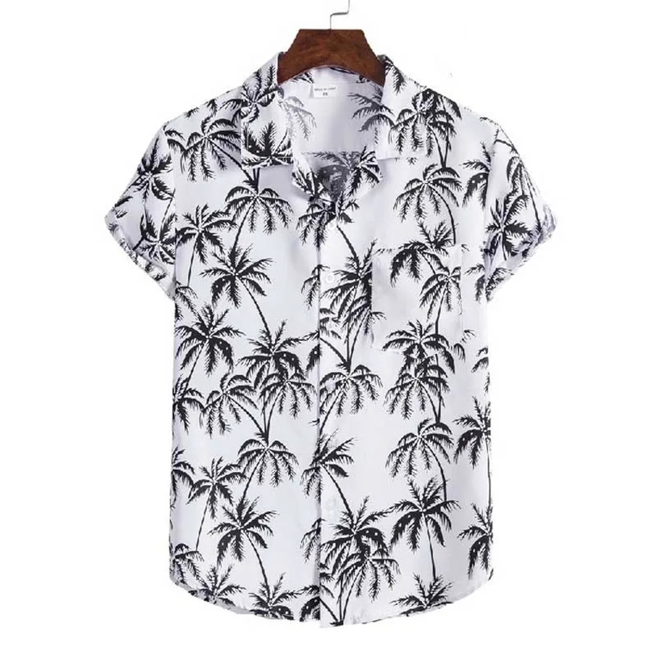 เสื้อเชิ้ตแขนสั้นสไตล์ฮาวายสำหรับผู้ชายสีขาว ฤดูร้อน ปี 2026 ผ้าโพลีเอสเตอร์ 100% กระดุมแถวเดียว ปกเสื้อเชิ้ตแบบลา펠 เหมาะสำหรับวันหยุดพักผ่อน ไซส์เอเชีย M-7XL