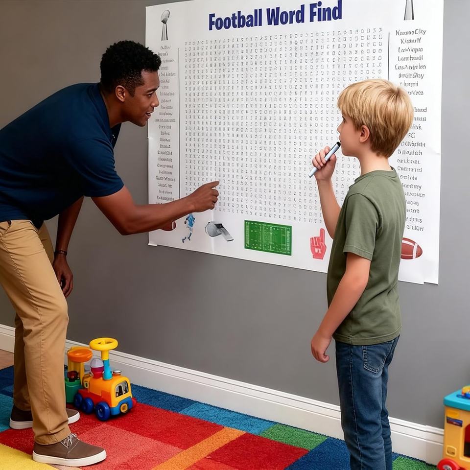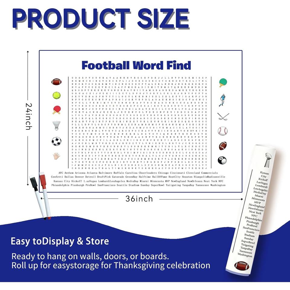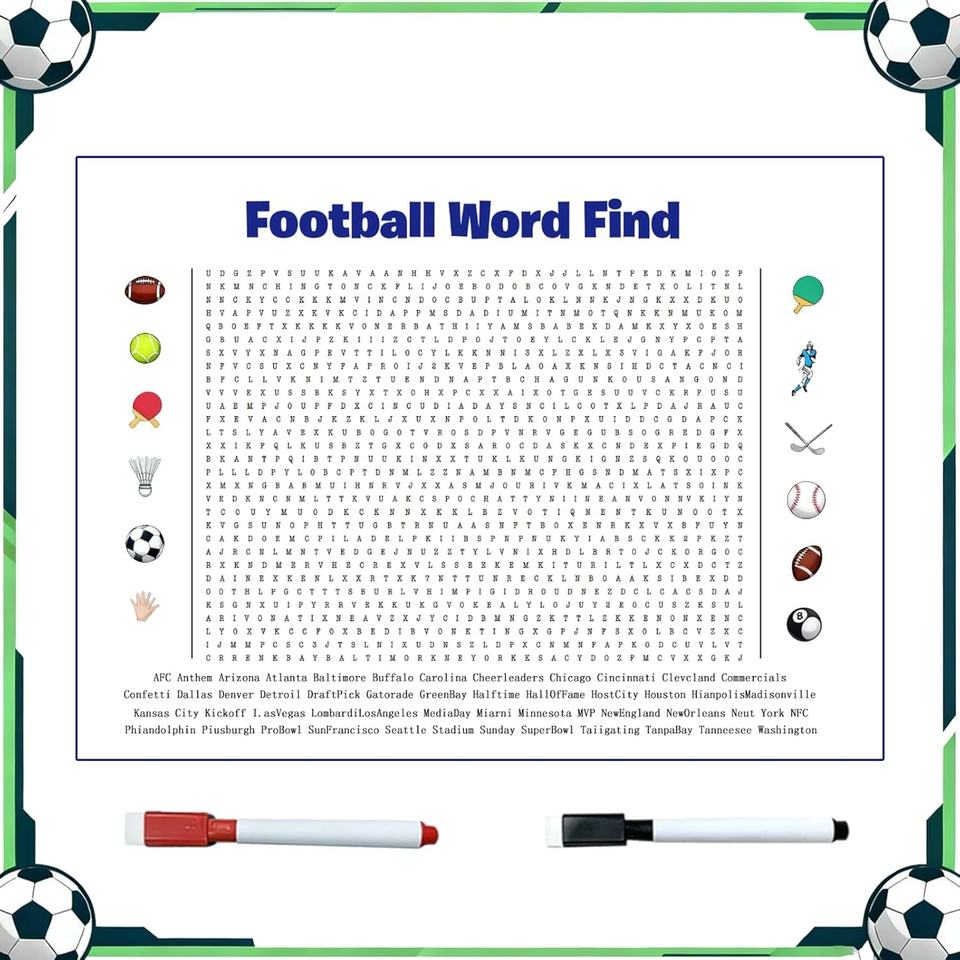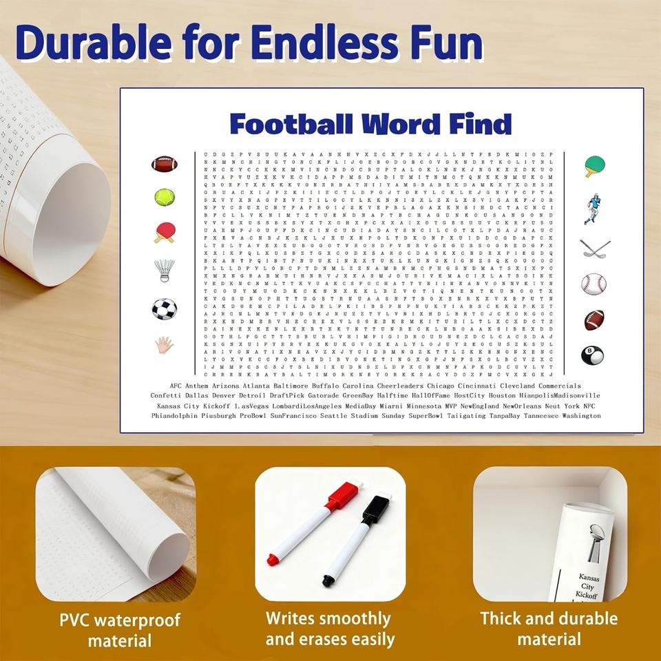 โปสเตอร์เกมค้นหาคำศัพท์ฟุตบอลซูเปอร์โบวล์ปี 2026 ขนาดใหญ่พิเศษ - เกมติดผนังขนาดยักษ์พร้อมคำศัพท์เกี่ยวกับกริดริออน 50 คำ เหมาะสำหรับงานปาร์ตี้ครอบครัว