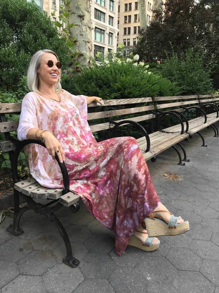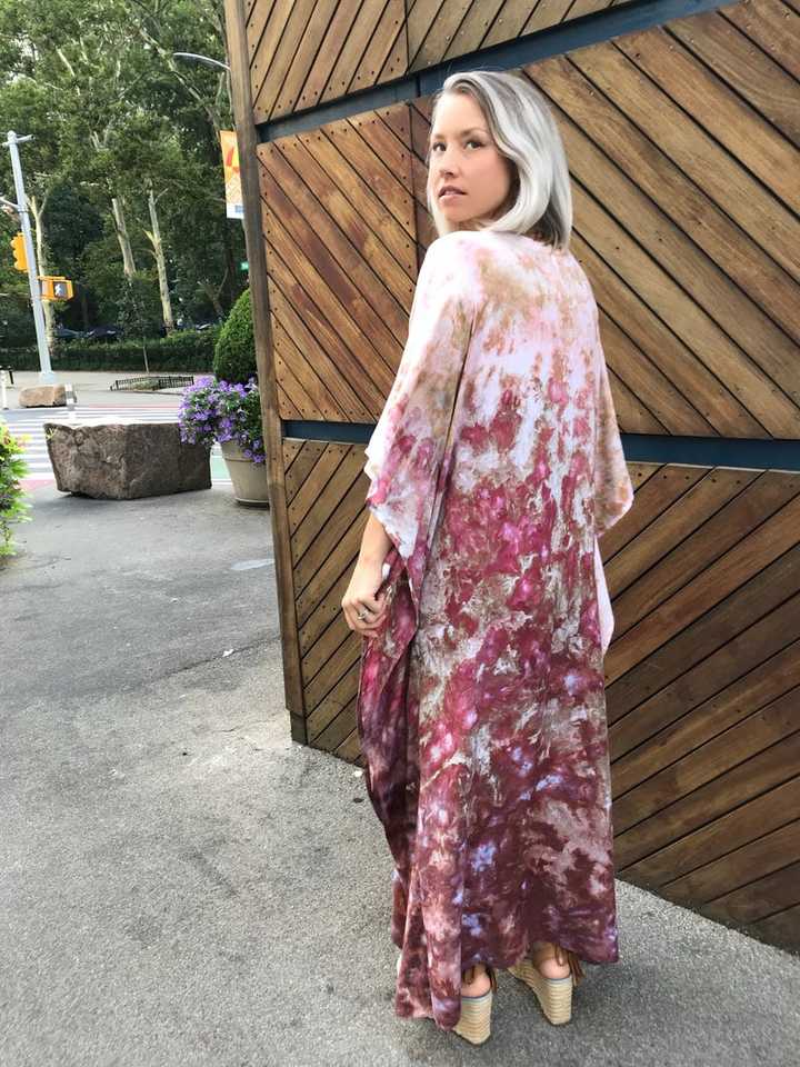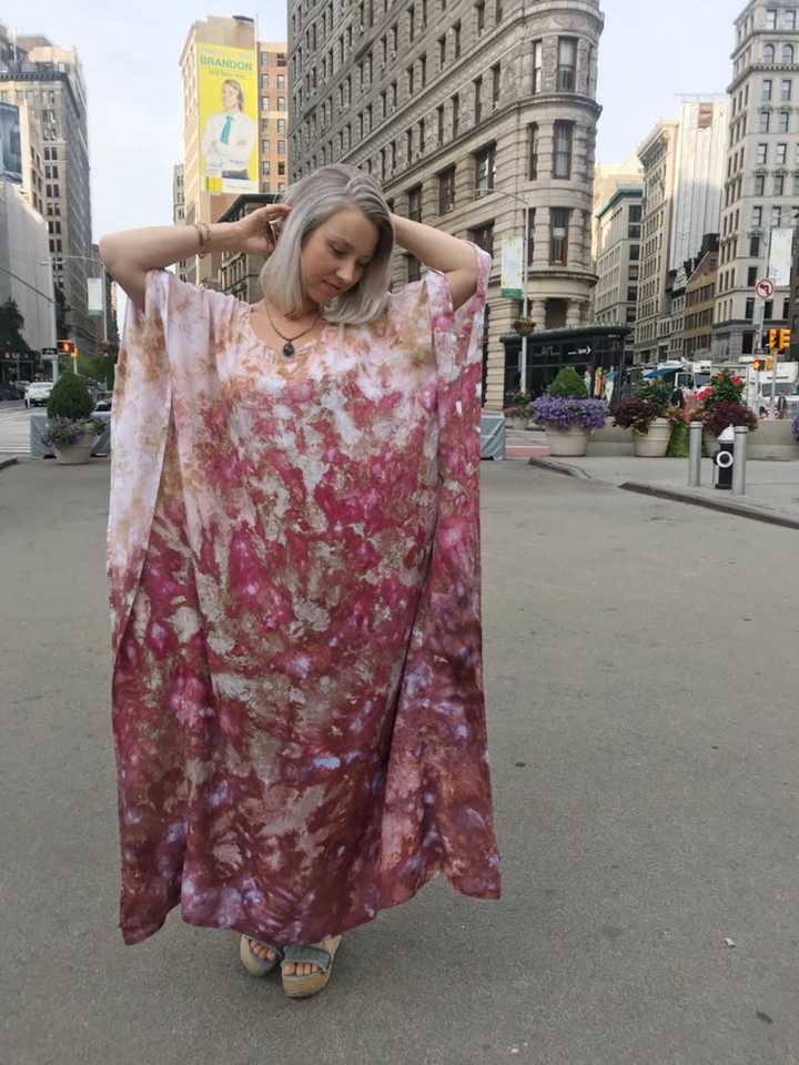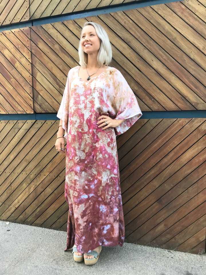 ชุดคาฟทันสีชมพูแบบ Tie Dye ปี 2026 สำหรับผู้หญิง ชุดเดรสยาวคลุมเท้า ผ้าเรยอน 100% ลายเรียบ เอวธรรมชาติ สไตล์ชายหาด โบโฮ คาฟทัน