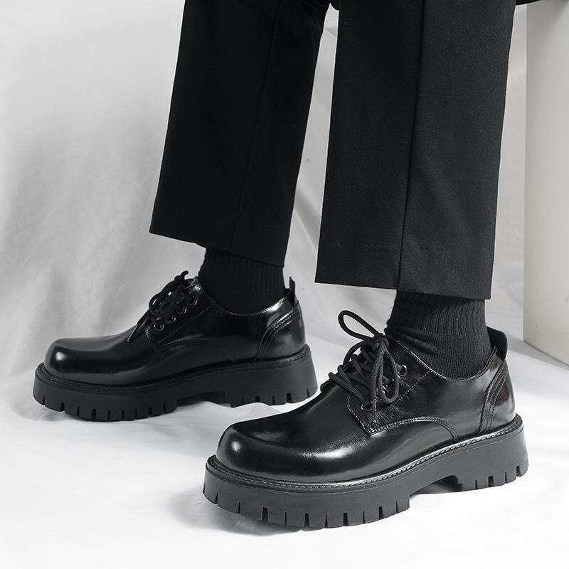 รองเท้าเดรสสีดำทรงหรูหราสำหรับผู้ชาย รุ่นปี 2026 ดีไซน์เนอร์ชั้นนำ ขนาดใหญ่พิเศษ สำหรับฤดูใบไม้ผลิ พร้อมเชือกผูกและพื้นหนา รองเท้าสั่งทำพิเศษ