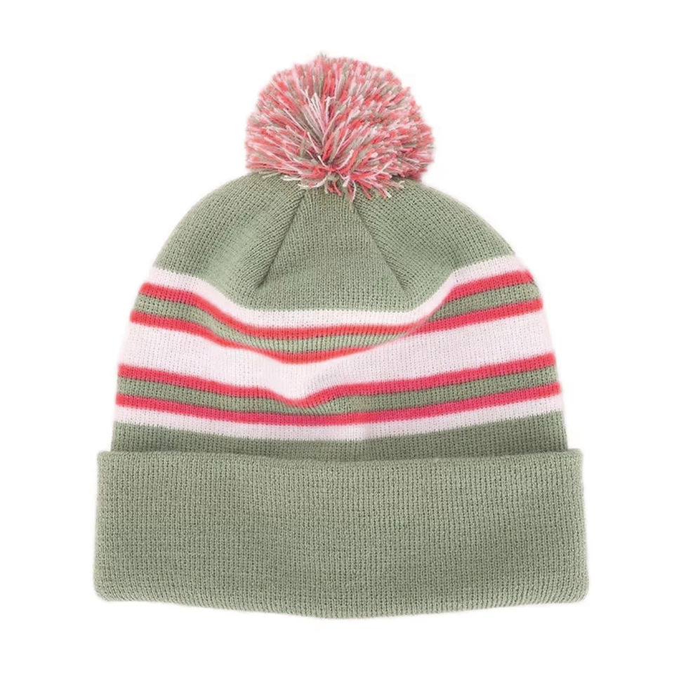หมวกบีนนี่อะคริลิกลายทางคุณภาพสูงปี 2026 แบบมีขอบพับได้ ปรับขนาดได้ สวมใส่สบาย ถักนิตติ้ง สำหรับผู้ใหญ่ พร้อมพู่ห้อย