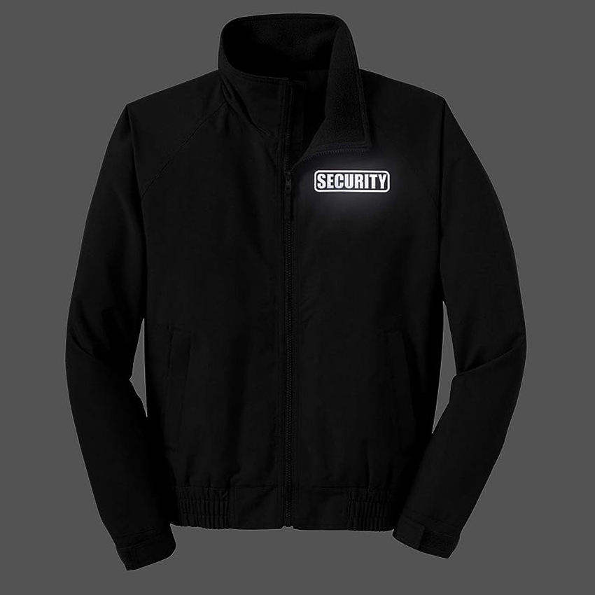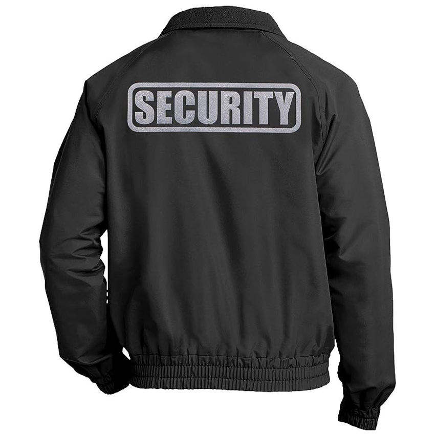 เสื้อแจ็คเก็ตยามรักษาความปลอดภัยคุณภาพสูงปี 2026 สีดำ พร้อมโลโก้สะท้อนแสง น้ำหนักเบา ผ้าฟลีซ ชุดยูนิฟอร์มสำหรับทำงาน รับผลิตแบบ OEM