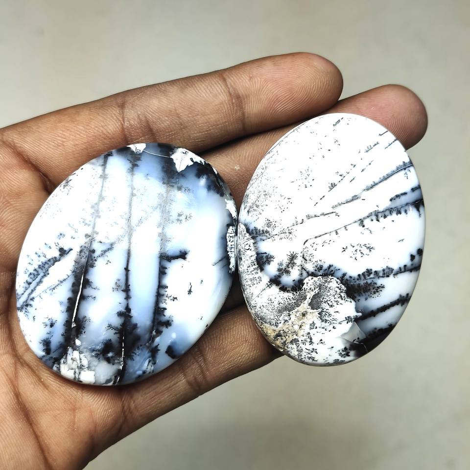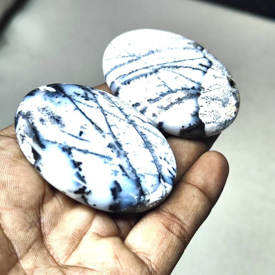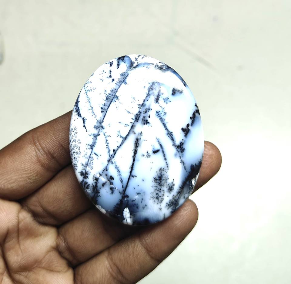 2026 Top Quality Handmade Natural Dendrite Opal Palm Cabochon Smooth White Loose Oval Cut Gemstone for Jewelry Making Lot