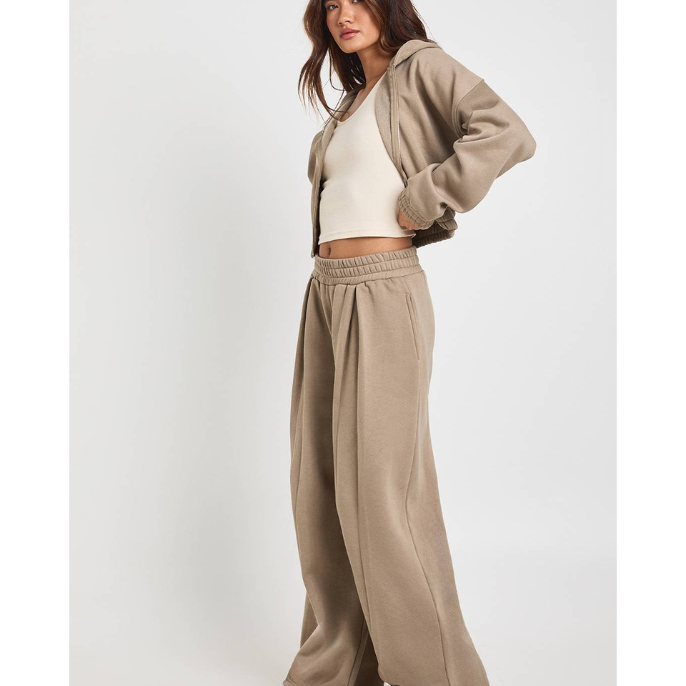 ชุดออกกำลังกายและวิ่งปี 2026 เสื้อฮู้ดครอปทรงเข้ารูป 2 ชิ้น ชุดเซ็ตโพลีเอสเตอร์ ระบายอากาศได้ดี น้ำหนักเบา ชุดออกกำลังกายแบบมีซิป