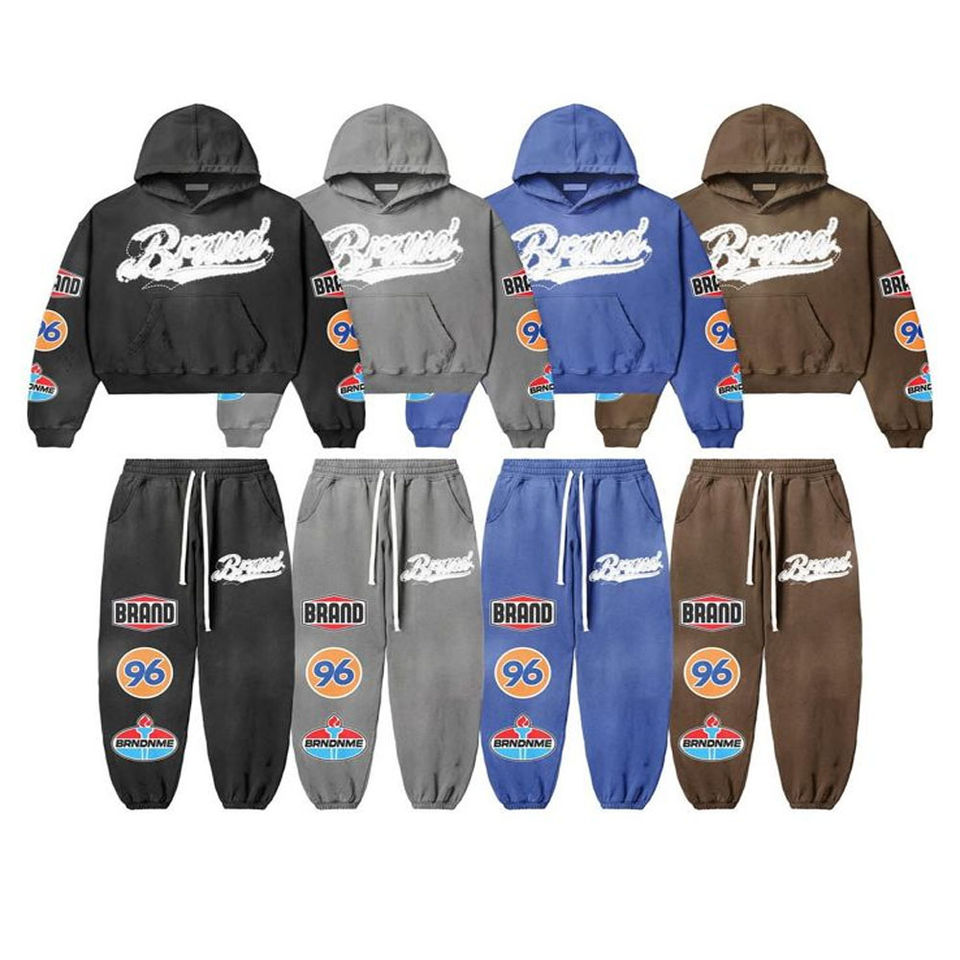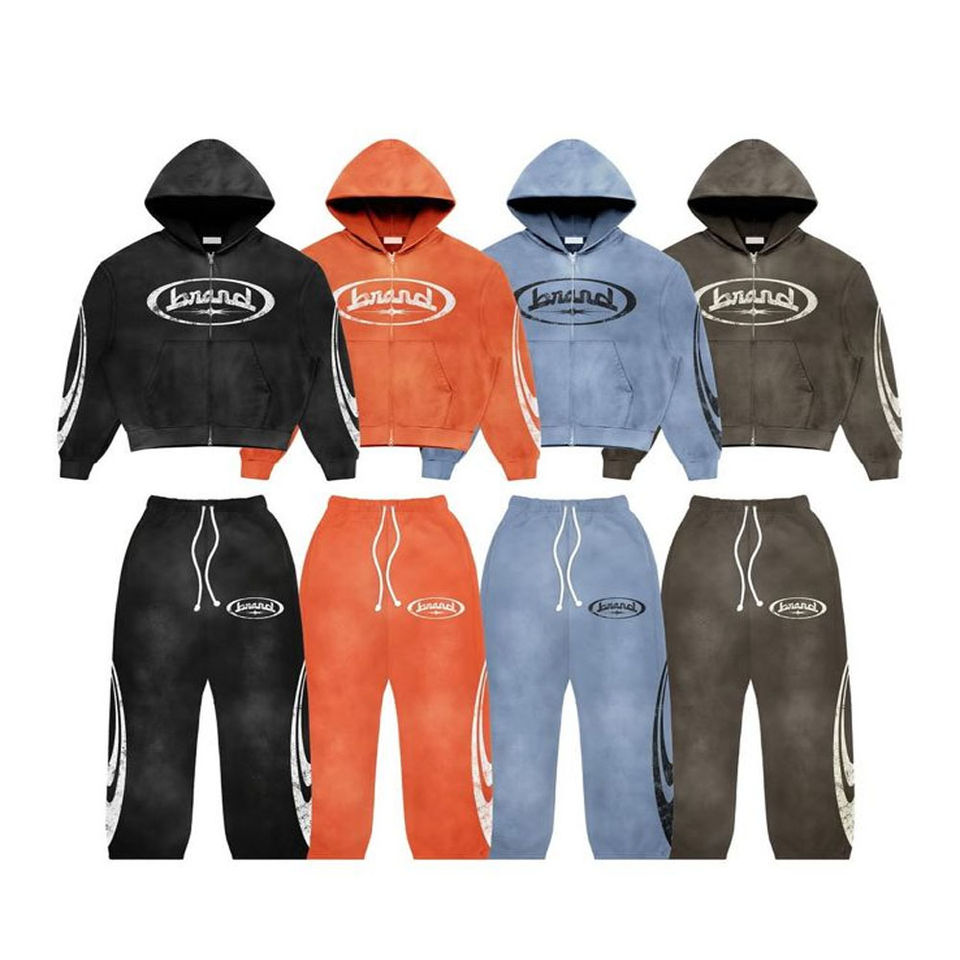 ชุดแทร็คสูทสำหรับผู้ชายผ้าคอตตอนพิมพ์ลาย400gsm บ็อกซี่น้ำหนักเบาประดับพลอยเทียม2026