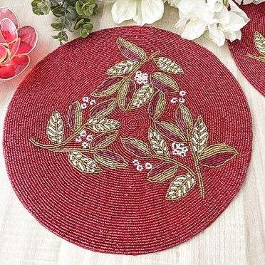 แผ่นรองจานปักลายด้วยมือประดับด้วยเม็ดลูกปัด ดีไซน์ทันสมัย รูปทรงโค้งมน สำหรับงานเทศกาล ตกแต่งบ้าน โต๊ะกาแฟ โต๊ะอาหาร ปี 2026