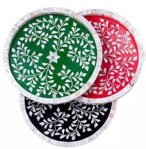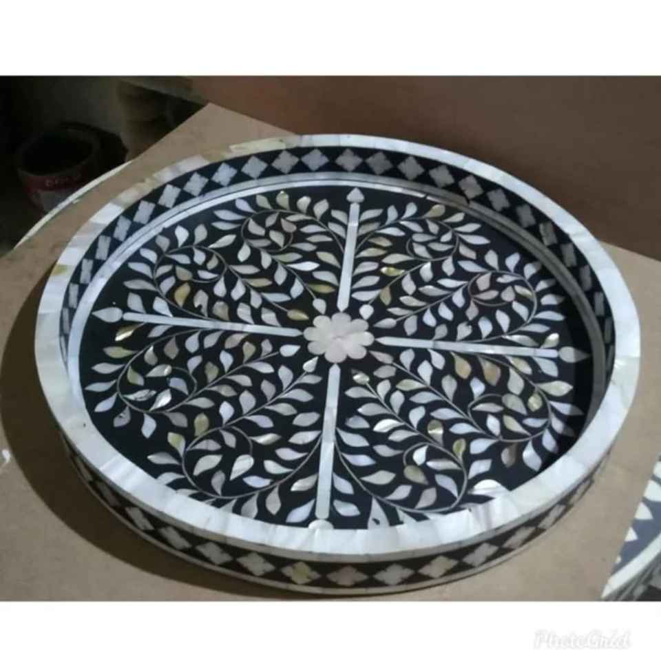 ถาดเสิร์ฟและจัดเก็บงานฝีมือเรซิ่นและมุกฝังลายดอกไม้ทรงกลมสำหรับงานแต่งงาน รอมฎอน อีด ปี 2026 สำหรับวางบนโต๊ะ