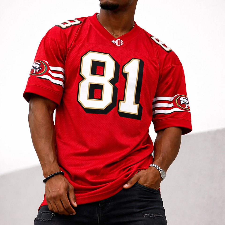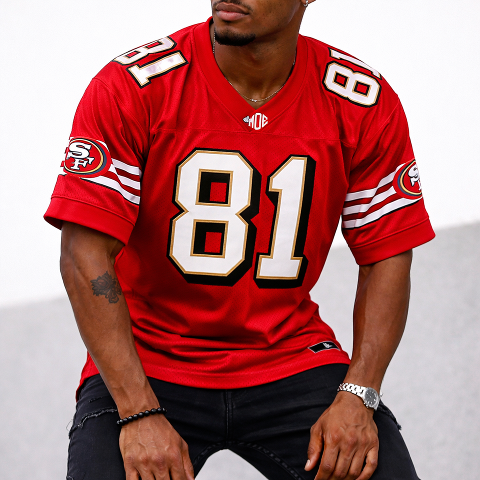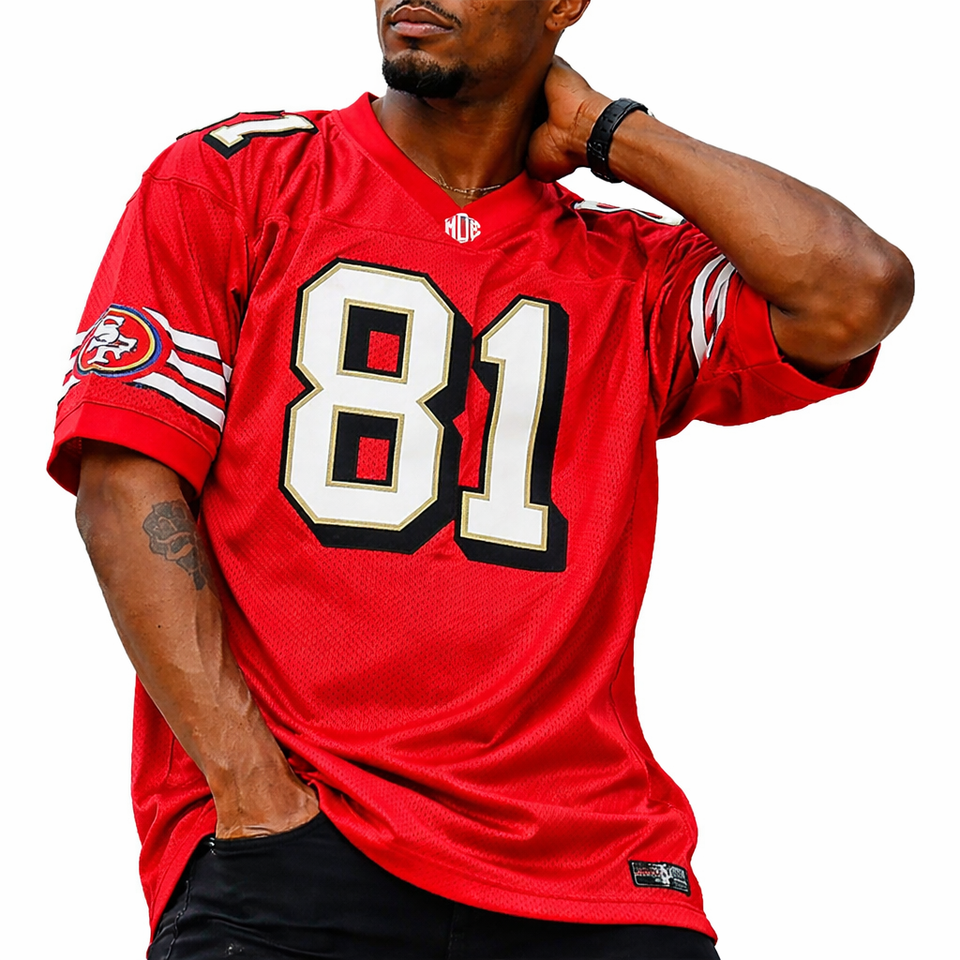 เสื้อฟุตบอลอเมริกันตาข่ายสีแดงสุดฮิตปี 2026 สำหรับผู้ชาย ชุดทีมแบบกำหนดเอง หมายเลข 100% โพลีเอสเตอร์ รับผลิตเสื้อแบบ OEM ขายส่งจากโรงงาน