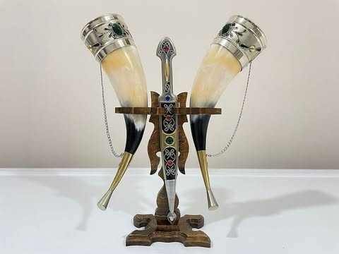 แก้วน้ำเขาสัตว์วีกิ้งแบบทำมือ ปี 2026 แก้วเบียร์ทำจากเขาวัวแท้ ขนาดสั่งทำได้ ขัดเงา พร้อมฐานวางแก้วเขาควาย
