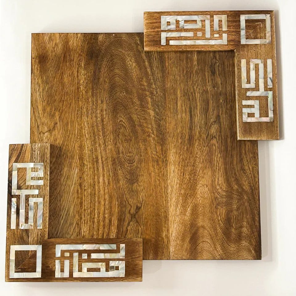 ถาดเสิร์ฟไม้ฝังมุกและลายไม้แบบวงกลม รุ่นยอดนิยมปี 2026 สำหรับใส่ช็อกโกแลต ตกแต่งโต๊ะ