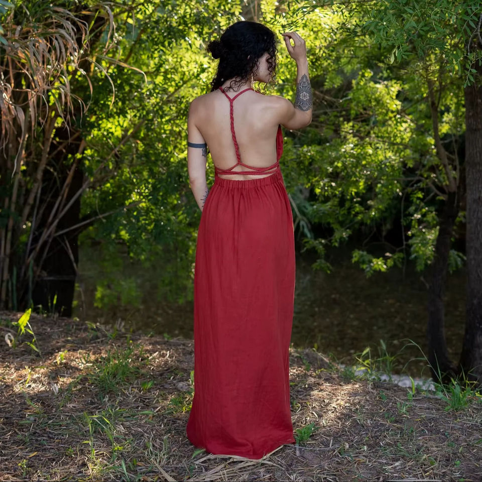 เดรสยาวผ้าฝ้ายทรงโบโฮเปิดหลัง ดีไซน์เก๋ไก๋ทันสมัยปี 2026 พร้อมผ่าด้านหน้า เหมาะสำหรับงานเทศกาลฤดูร้อนและวันพักผ่อนริมชายหาด