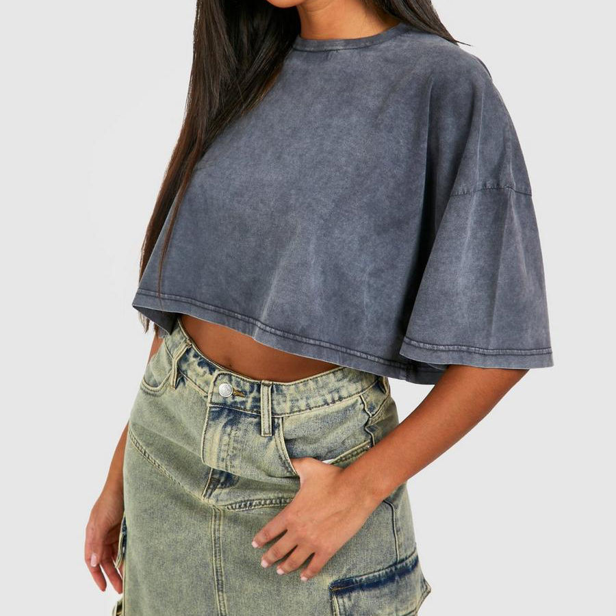 ชื่อสินค้า:เสื้อยืดผ้ายีนส์ฟอกสี