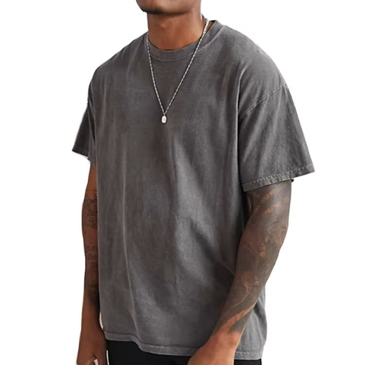 เสื้อยืดผู้ชายทรงหลวมสไตล์วินเทจปี 2026 ยี่ห้อ HSI ขายส่งแบบ OEM ผ้าคอตตอน ผลิตในปากีสถาน รับสกรีนโลโก้ตามแบบ