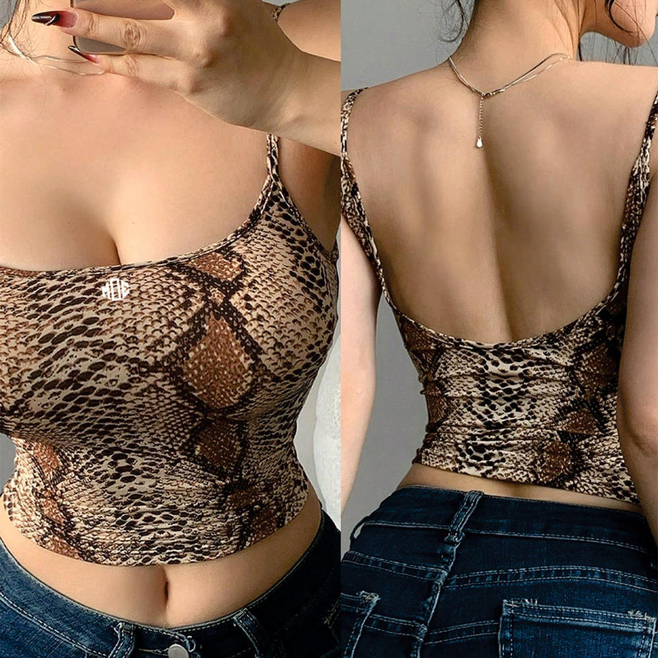 2026 Trendy Snake Print Spaghetti Strap Crop Camisole Slim Fit Stretch Tank Top Street Summer Fashion OEM Services women's shirt