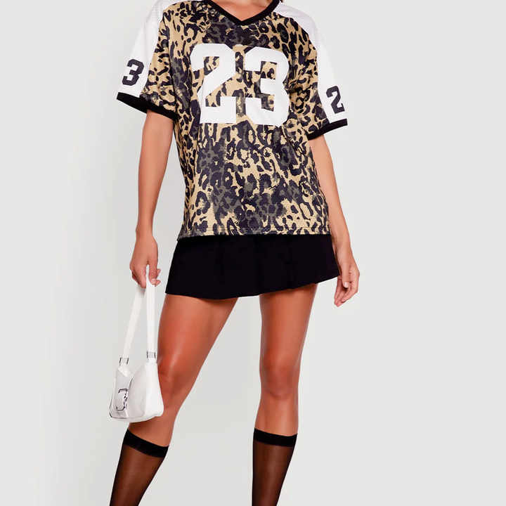 เสื้อเจอร์ซีย์อเมริกันฟุตบอลแบบตาข่ายระบายอากาศ แขนสั้น พิมพ์ลายเสือดาว รุ่นปี 2026 สำหรับทุกเพศ รับผลิตตามสั่ง (OEM) สำหรับธุรกิจ B2B สหรัฐอเมริกา